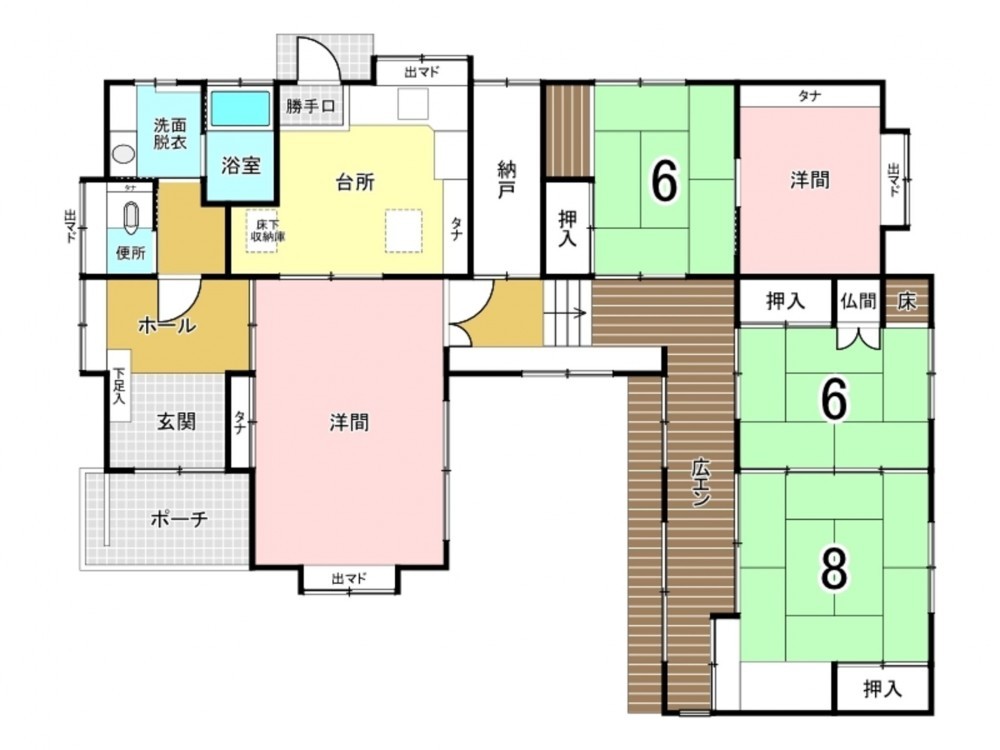 - 洗浄便座、複層ガラス、FF暖房、エアコン、火災警報器(報知機)、庭