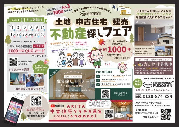 秋田市物件数エリアNo,1なカントリーガーデン不動産で見て、悩んで、選んで…