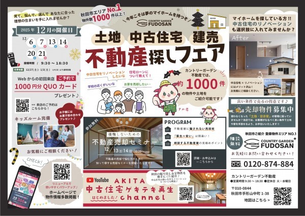 秋田市物件数エリアNo,1なカントリーガーデン不動産で見て、悩んで、選んで…