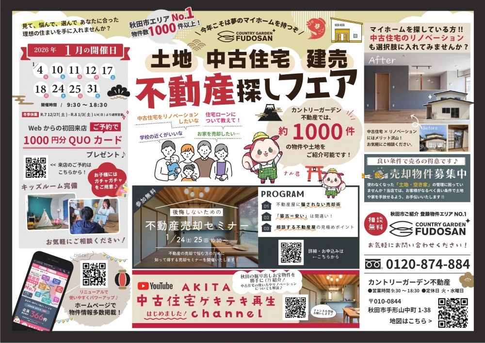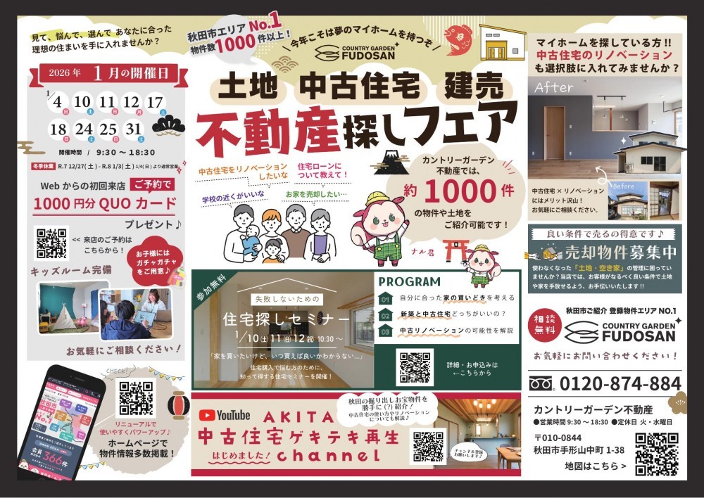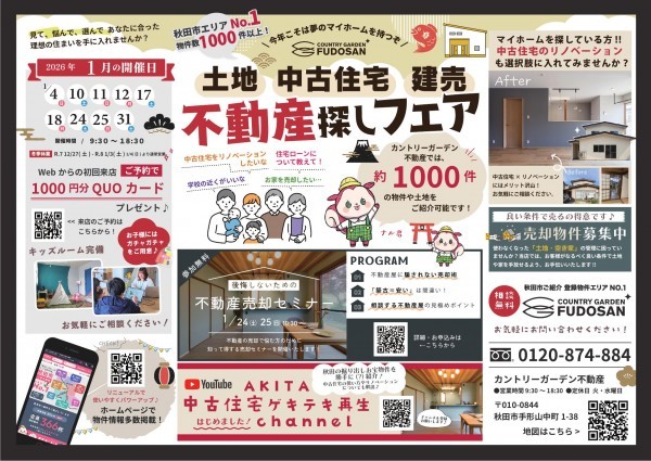 秋田市物件数エリアNo,1なカントリーガーデン不動産で見て、悩んで、選んで…
