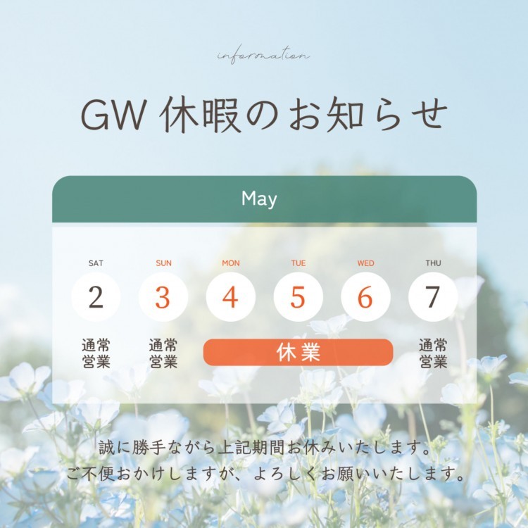ゴールデンウイーク休暇のお知らせ